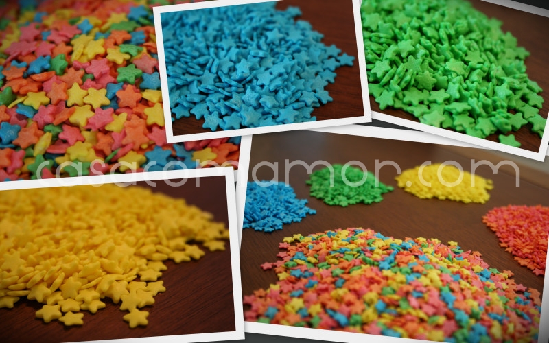 Esses dias comprei aqueles confeitos lindos de estrelinhas coloridas para usar em alguns cupcakes e fiquei algum tempo separando as pequeninas estrelas por cores.