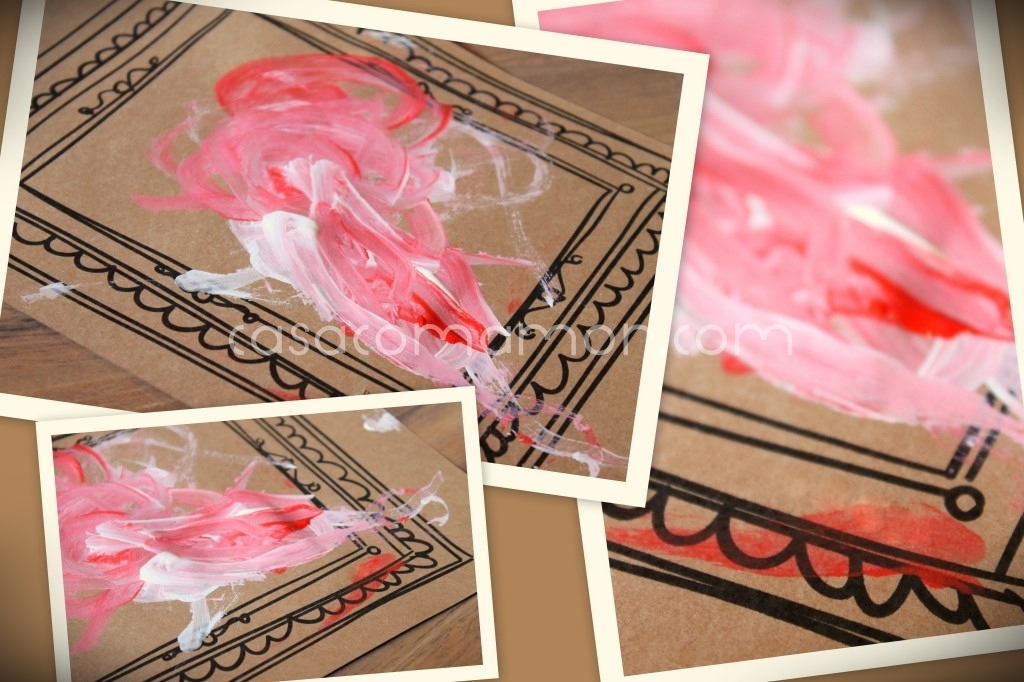 Imprimi uma moldura numa folha de papel, e dei pra eles fazerem um “quadro” pro papai. Nem preciso dizer que adoraram a bagunça.