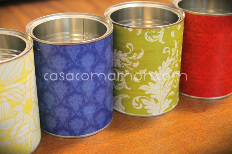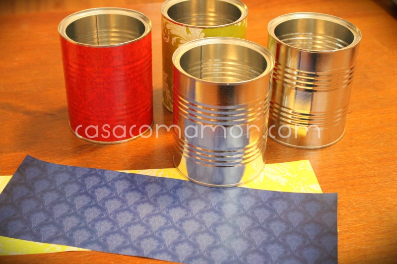 Aí eu olhei umas latas de leite em pó vazias dando sopa no armário e resolvi inventar alguma coisa com elas.