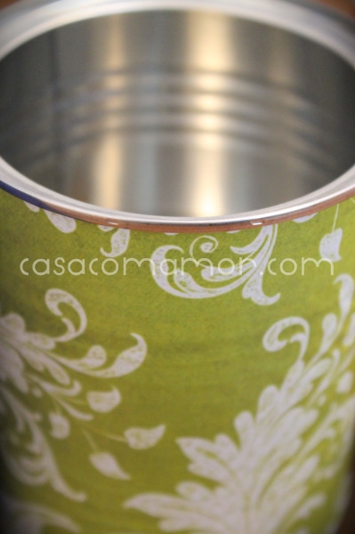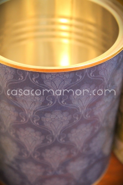Luciana, como o papel é adesivo, não tive muita dificuldade. Eu tirei o papel protetor do adesivo, deitei na mesa, encaixei a lata e aí fui rolando a lata sobre o adesivo.