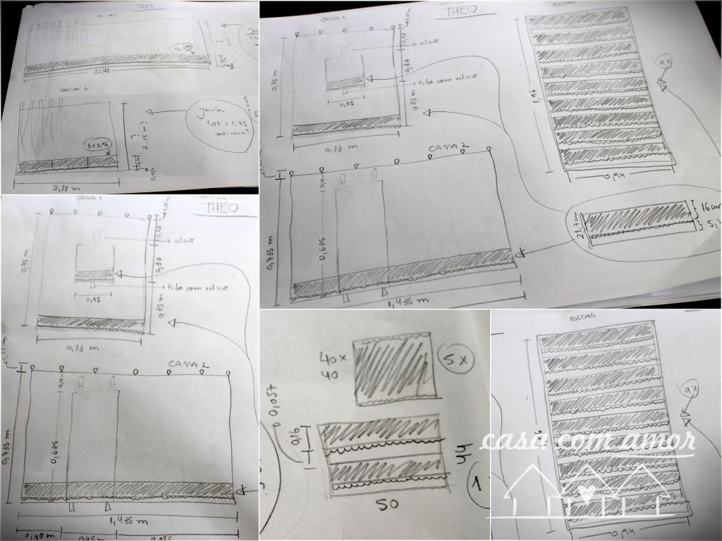 Só pra ter uma ideia, compramos os tecidos na Etsy em agosto de 2011, e olha que a gente já vinha falando sobre o quarto, as cores e tudo mais há uns bons meses.