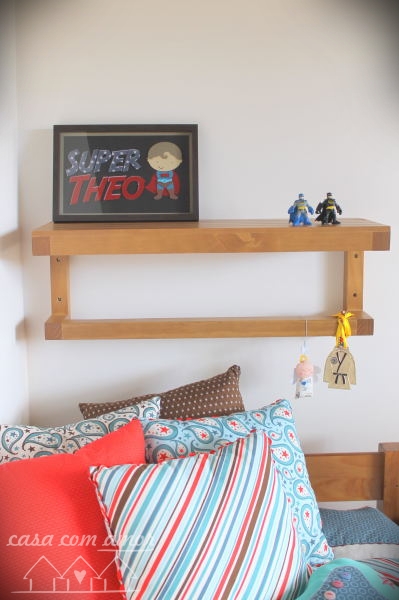 O garoto ficou super feliz com o resultado, e o que ele mais gostou foram os quadros e as almofadas de super heróis. :)