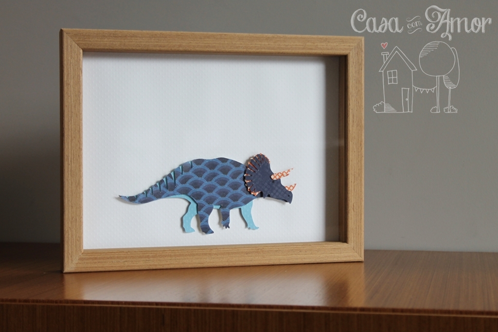 Agora o Téo está com 5 anos, e vai ganhar um quarto lindão só pra ele, e eu recebi a missão de criar três quadros com seus dinossauros favoritos, Tiranossauro Rex, Triceratops e Edmontossauro, pra decorar o ambiente.