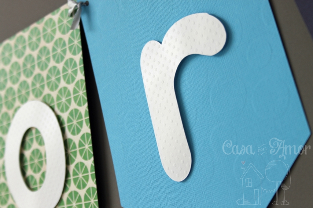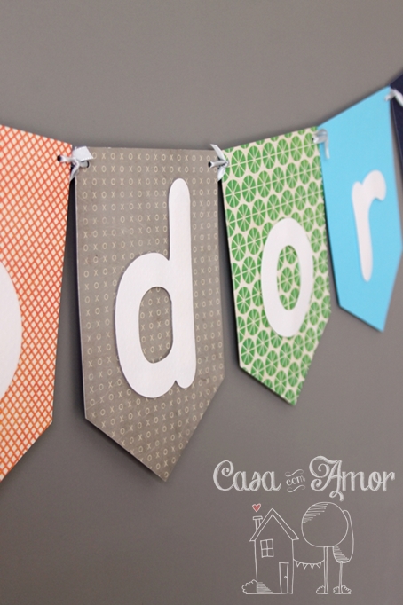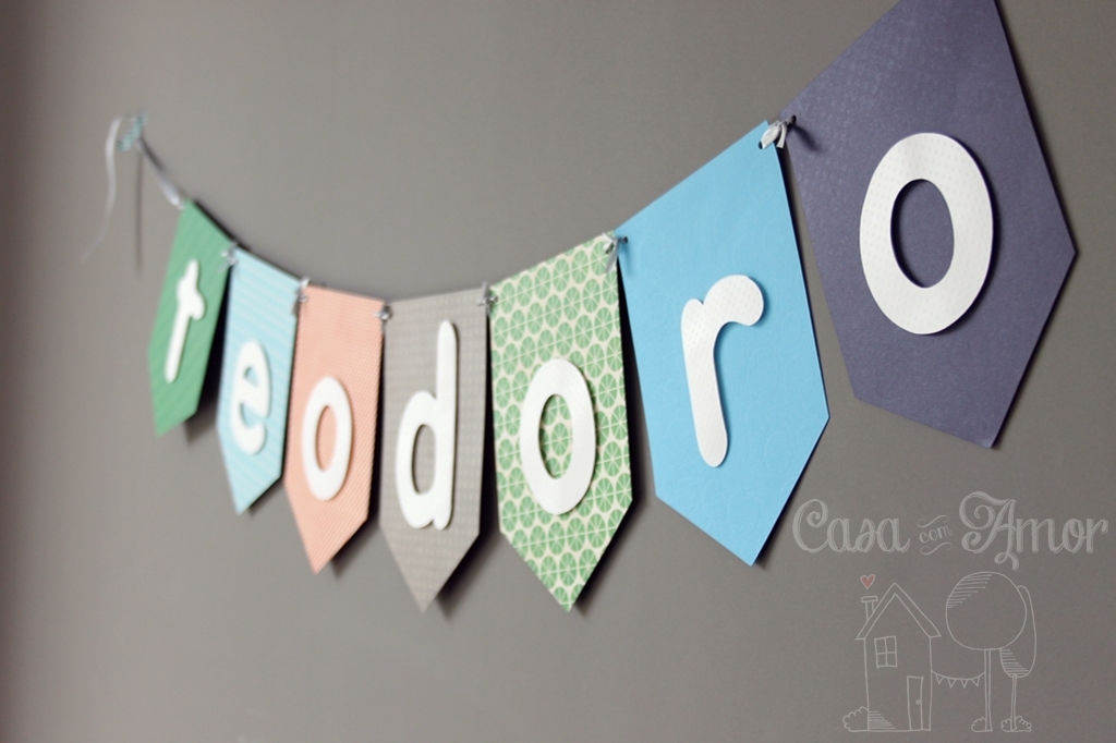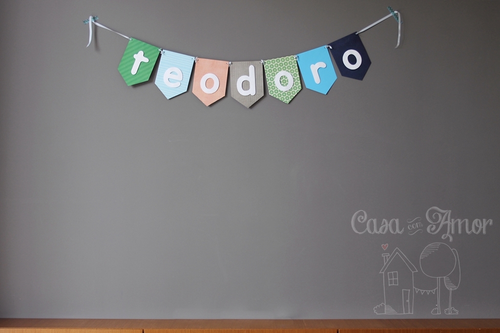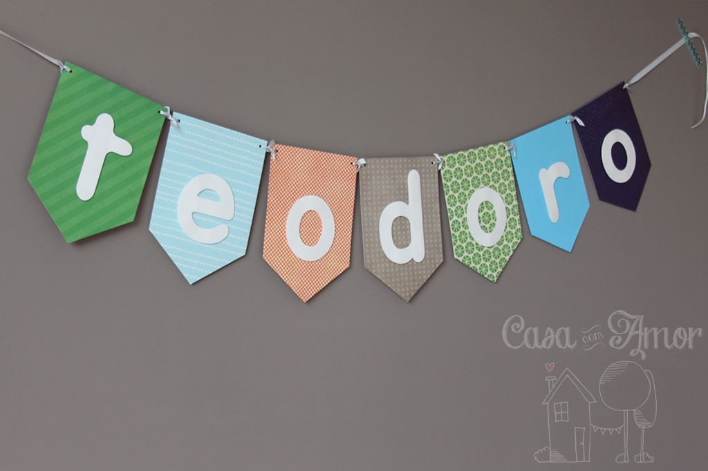 E pra completar o quarto, a Juliane também pediu bandeirolas de duas camadas, com o nome do Teodoro: