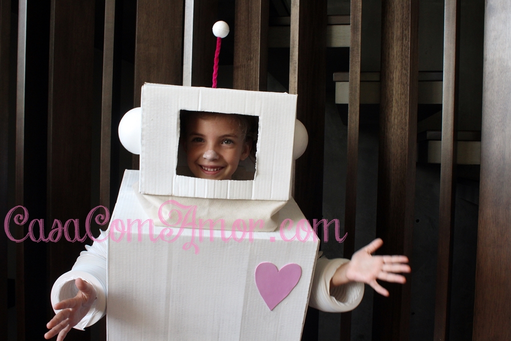 Na hora de ir pra festa ela acabou não usando as “pernas” de robô, porque incomodavam. Mas mesmo assim ficou uma gracinha minha robô bailarina banguela. :)