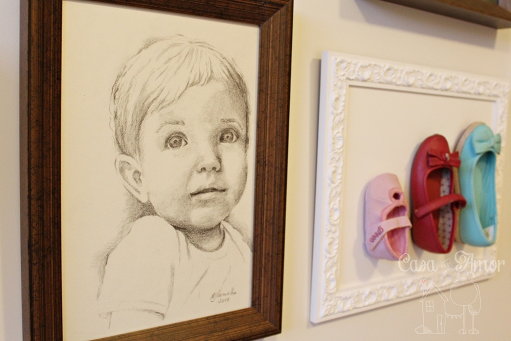Sabe o que me deixou com lágrimas nos olhos? Que me fez pensar em tantas coisas que talvez um dia, se Deus me permitir eu viverei? O quadrinho com os sapatinhos da Malu! Eu fiquei um tempão olhando, olhando, e pensando: “se um dia eu tiver a experiência de viver a maternidade, vou querer fazer algo exatamente assim, tem tantos significados e eu quero muito poder ver o passar dos anos, em um único quadro, ver os caminhos que passamos, por onde estivemos, e quantos mais passaremos!”