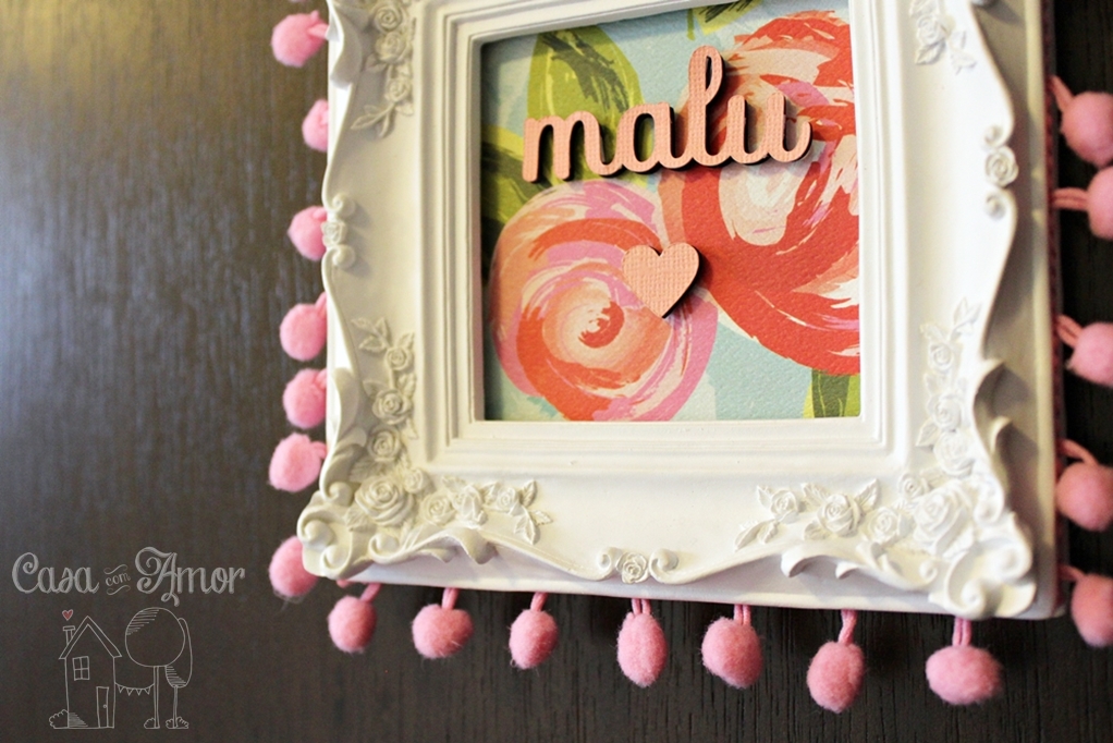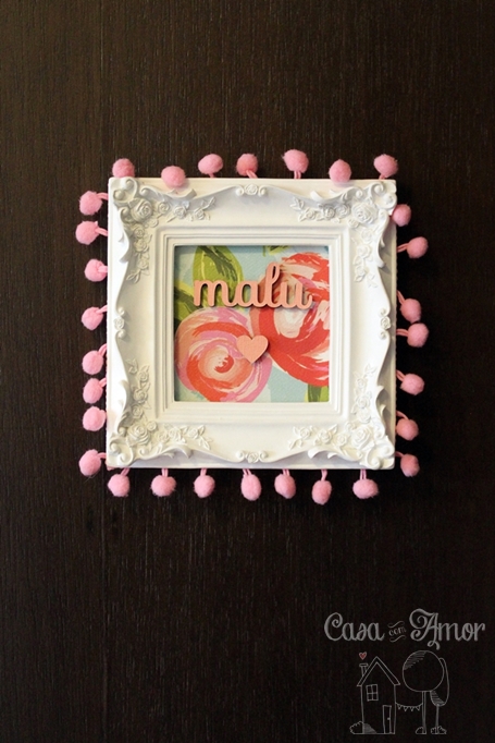 E eu fiz um quadrinho pra porta, usando grelô e papéis de scrapbook que eu tinha em casa, e uma moldurinha de gesso que tenho guardada há tanto tempo que não me lembro mais onde comprei.quarto feliz 131 quarto feliz 121