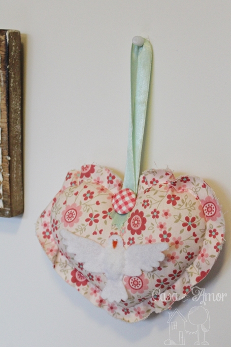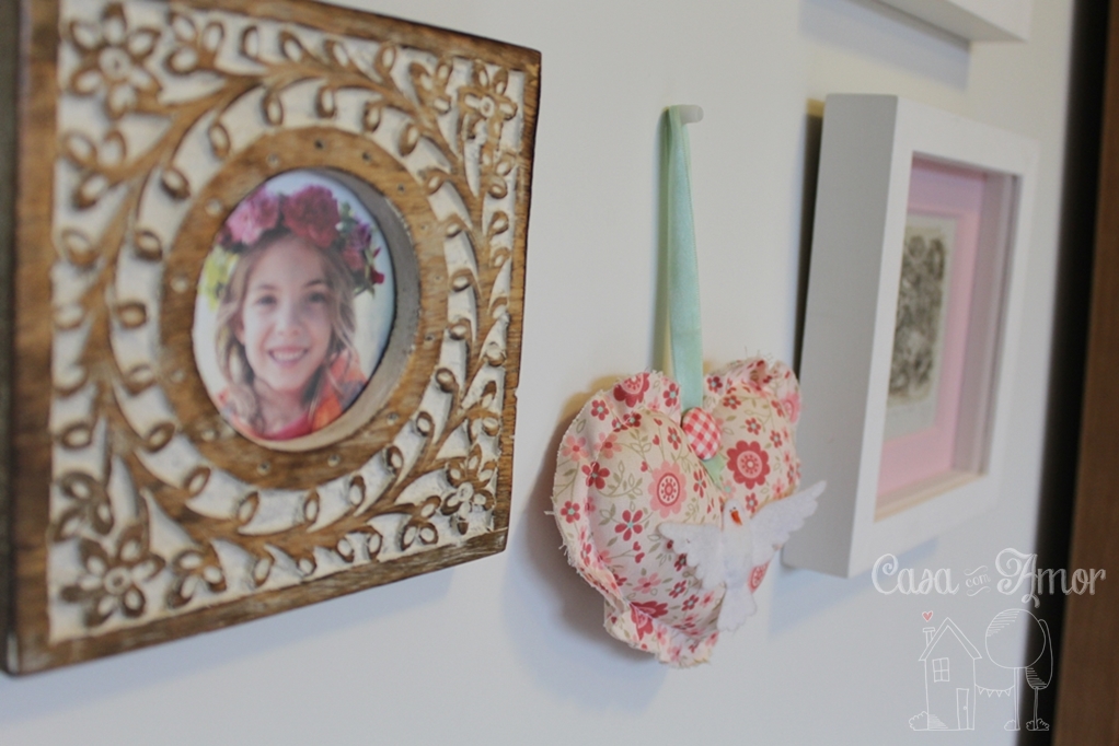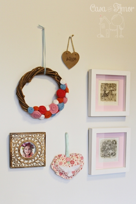 A guirlandinha de rosas de feltro que eu fiz em 2011, e continua firme e forte.quarto feliz 171 E tem também o mesmo porta retrato, que é da Tok Stok, e duas lembrancinhas de batizado, em forma de coração.