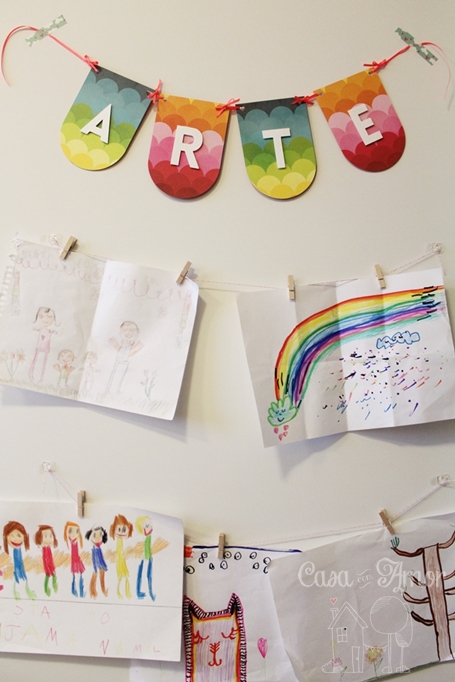 Atrás da porta eu aproveitei o espaço e fiz um cantinho para a pequena artista expor algumas de suas artes. :)