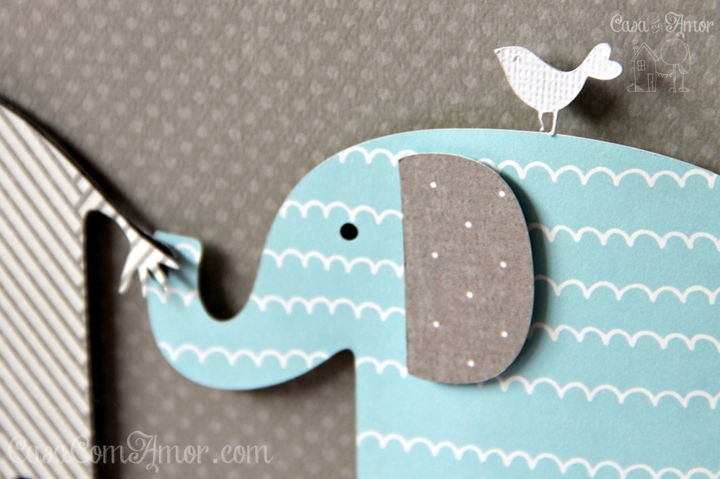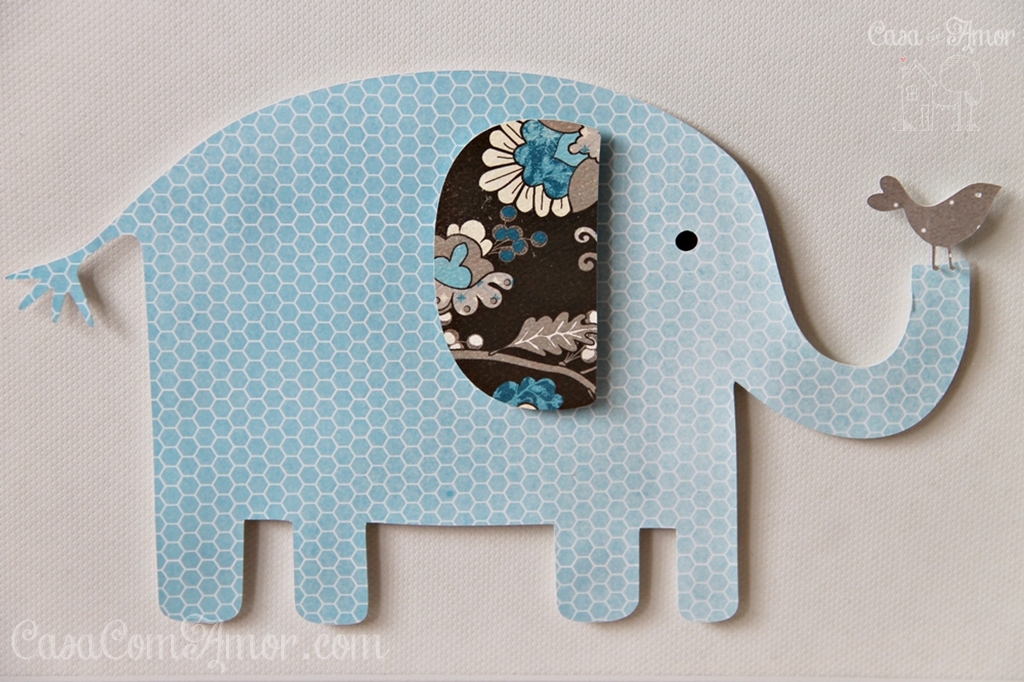 Como os desenhos tinham linhas simples, ficou bem legal pra trabalhar com texturas e padrões diferentes. Então usei muitos papéis estampados, e achei que ficou simples, elegante e ao mesmo tempo bem fofo, ideal para um quarto de bebê!
