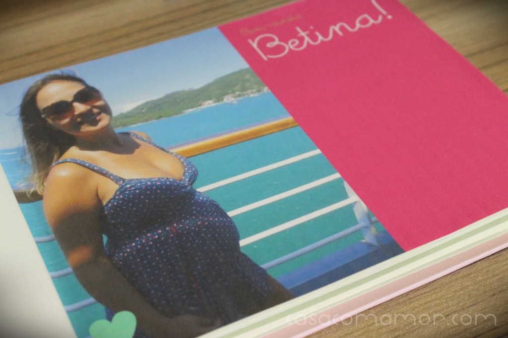 A silhoueta da grávida é tão linda, e tem o recorte até dos cílios. E o nome do bebê, separado em sílabas, vazado e com o arremate do coração, achei que ficou encantador.