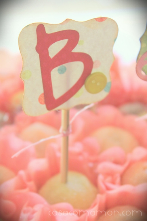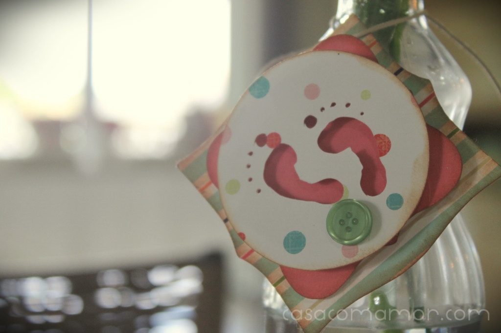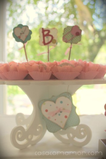 As tags dos docinhos eram de pezinhos vazados, cegonha, carrinho de bebê e a letra B.