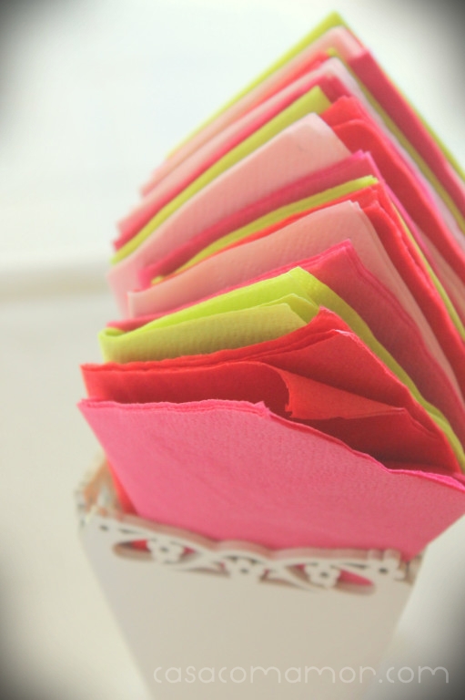 No bar, onde foram servidos os crepes doces e salgados, também havia uma grinalda com recortes de papel, só que menorzinhos. E mais um vasinho e outra roupinha.