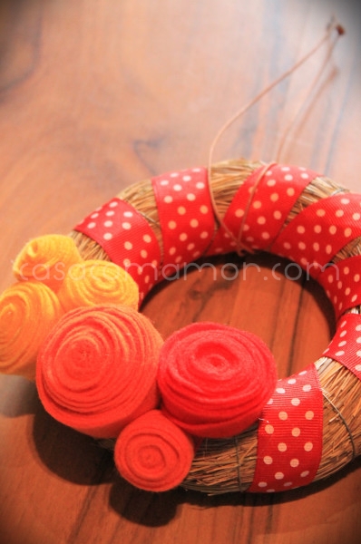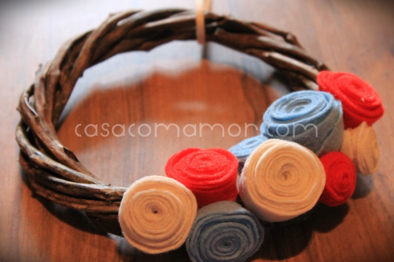 A guirlandinha de rosas de feltro que eu fiz em 2011, e continua firme e forte.