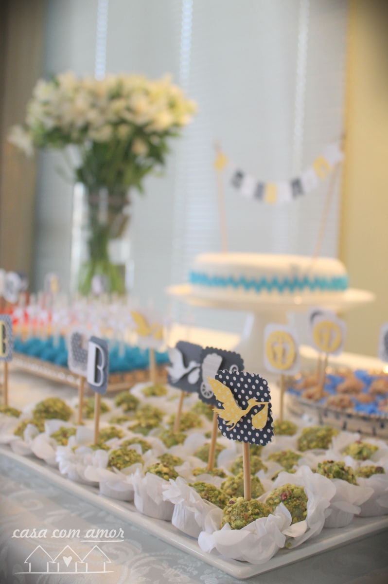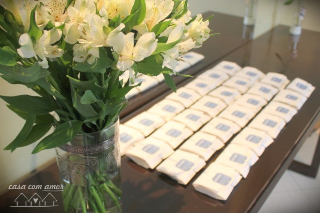 O coração de madeira é lembrancinha do batizado branco e kraft. :)