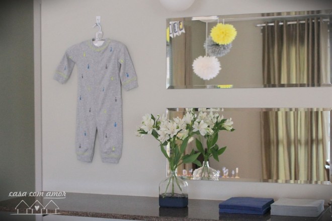 O desenho feito pela avó, quando a pequena tinha um aninho, já estava no Quarto Lindo-Lindo e ganhou seu lugarzinho especial nesta composição também. :)