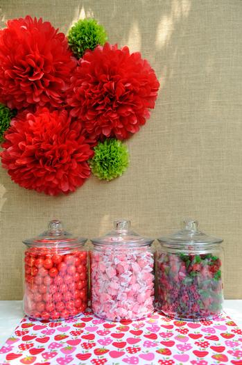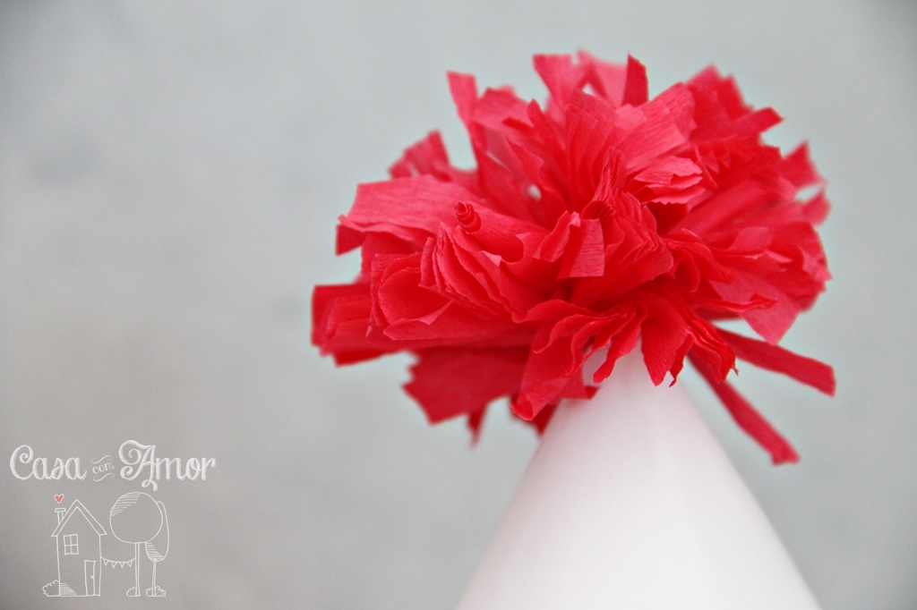 Usei três cores de tinta/grelô: rosa, vermelho e azul.