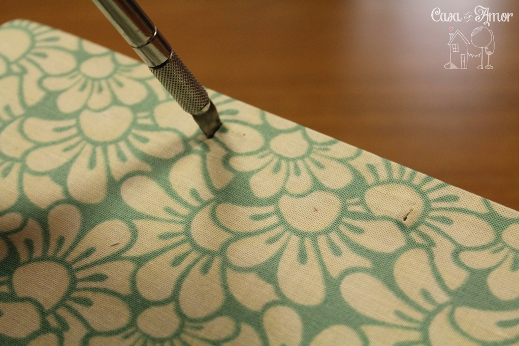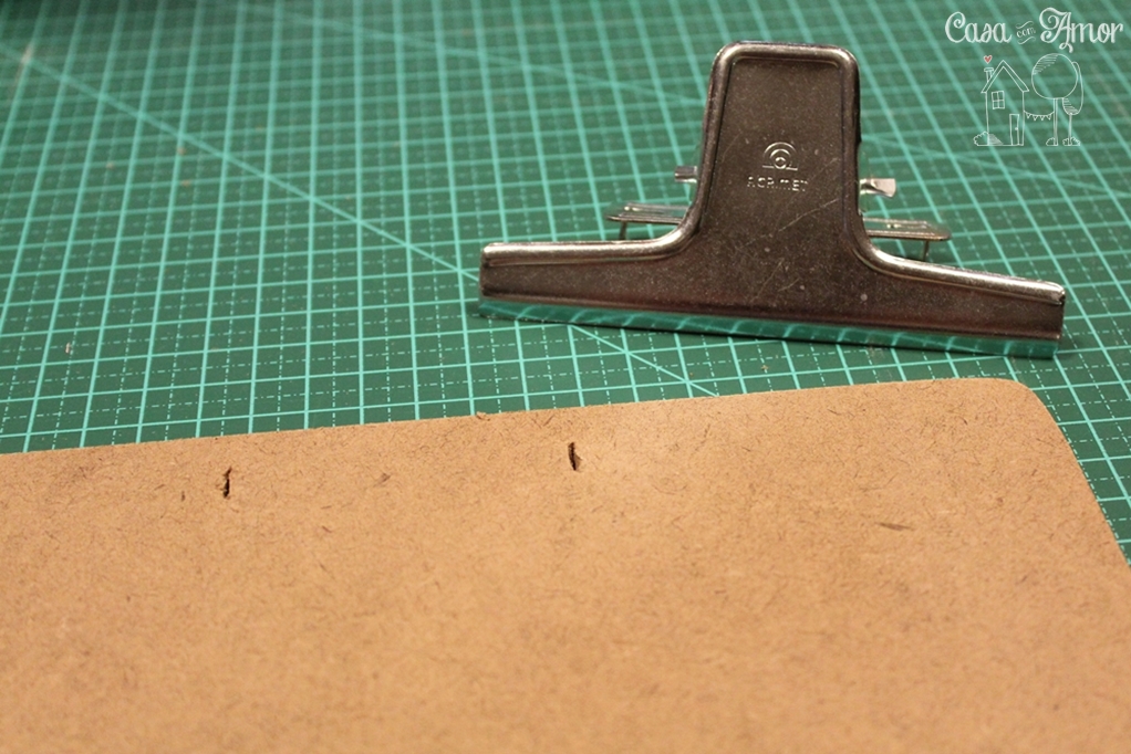Quando termino de aplicar, pego a tesoura e faço 4 cortes no Contact, 2 em cima, e 2 embaixo, bem no centro do caderno, onde a capa dobra: