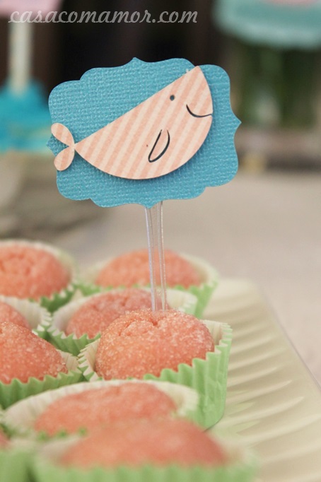 Um baleiro recheado com bolas de feltro. O baleiro eu encontrei na Lou Papeterie e as bolinhas eu comprei na Etsy, e vieram da Alemanha, da lojinha 8natur (também demoraram muito pra chegar e sem código de rastreamento).